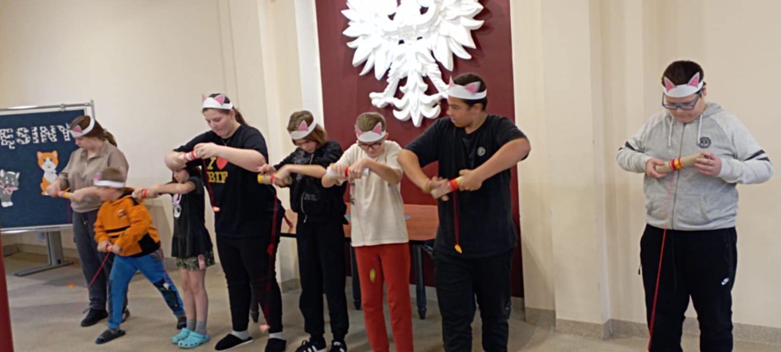 Zgodnie z tradycją, 29 września br. odbyło się uroczyste przyjęcie nowych wychowanków do braci internackiej. Aby stać się pełnoprawnymi wychowankami, kandydaci musieli zmierzyć się z przygotowaną próbą, obejmującą różne konkurencje. Na liście znalazły się: picie mleka przez słomkę (prawdziwy test płuc i cierpliwości), rzut piłeczkami do celu (niektórzy odkryli w sobie ukryty talent olimpijski), karmienie kolegi z zasłoniętymi oczami (tu ucierpiały głównie koszulki) oraz obowiązkowo zamiatanie podłogi (sport narodowy w internacie). Wszyscy pomyślnie przeszli próbę, złożyli przysięgę i odebrali od Pana Kierownika pamiątkowe medale. Otrzęsiny były wspaniałą formą integracji wychowanków.